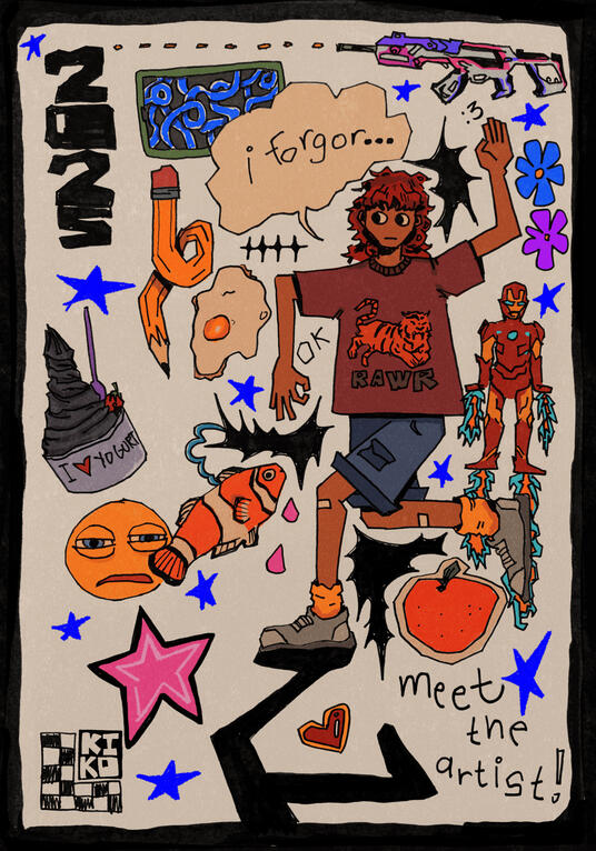 Under the pseudonym Kikoman, Asha Limin (b. 2005) is a student-artist based in Metro Manila, Philippines. They have been interested in various art forms since childhood which consequently developed a deeper interest in the visual arts in 2021.They are an illustrator and designer with inks and digital tools as their primary medium. Their body of work stems from their identity as a queer person, as a Filipino, their lived experiences involving mental health, and even personal struggles. Through such vulnerability, diving into these subjects help their goals against alienation and for connection.With these, they have been the Arts and Design Representative of St. Scholastica’s Academy Marikina SHS student government (Asusasyon Ng Kinauukulang Opisyal, 2023-2024), the Executive Director of ADYA Productions who spearheaded the entirety of its 2023-2024 artistic season, share their work through art markets in Metro Manila, and have been commissioned for personal pieces. Currently, they are pursuing a bachelor’s degree from the College of Fine Arts under the University of the Philippines Diliman.